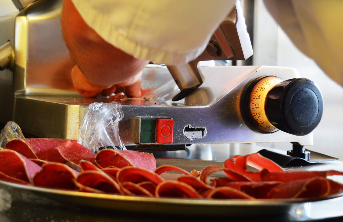Viande séchée de buffle, saucisse à l'ail et jambon à l'os de la Boucherie Graf à Bernex, cornichons et petits oignons